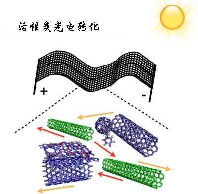 活性炭材料是光伏太陽(yáng)能電池的優(yōu)秀候選者:自然界中含量高,具有高光吸收性,并保持優(yōu)異的熱穩(wěn)定性和光穩(wěn)定性。其靈感來(lái)源于一般的碳納米材料可以是金屬或半導(dǎo)體,只需要一種金屬和一種半導(dǎo)體來(lái)制造太陽(yáng)能電池。