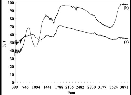 圖1:(a)的FT-IR光譜; 活性炭(b); 氧化鐵納米顆粒負(fù)載在活性炭上。